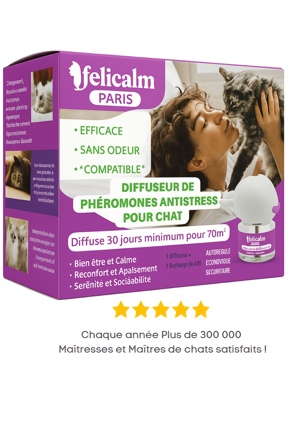🌿 Une solution naturelle, sans odeur ni médicament — pour apaiser votre chat et retrouver un foyer harmonieux.